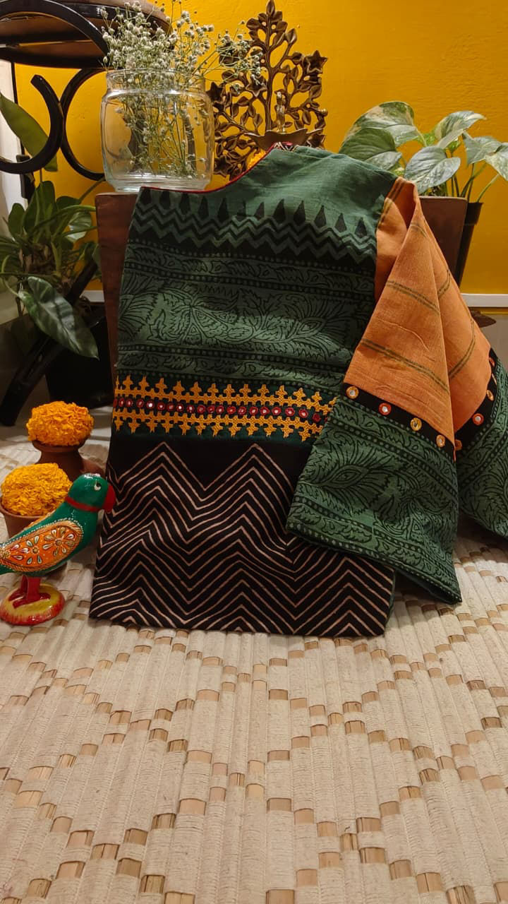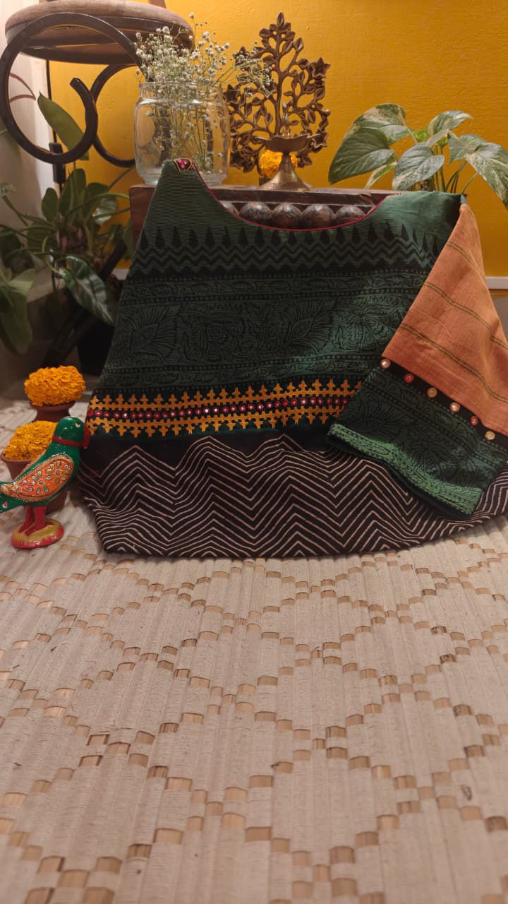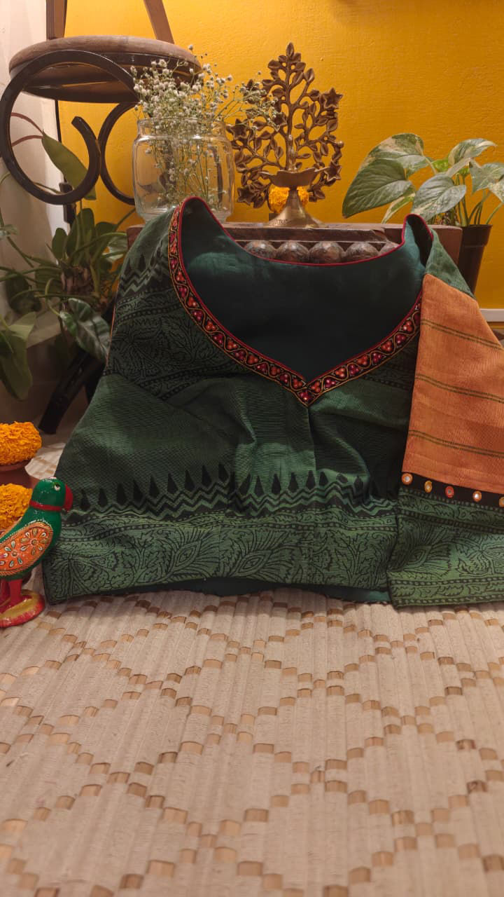 Our artisans creatively hand embroider, hand paint and hand print the blouses that come to you from the design house of SVASA. We use hand woven fabric extensively. You may notice very minute, almost insignificant flaws in the crafts since they are all handmade. We urge our patrons to overlook a few human errors that may have occurred in the process. Our aspirations are towards an empowered society, focusing on keeping traditional needlecraft alive for a long time to come.