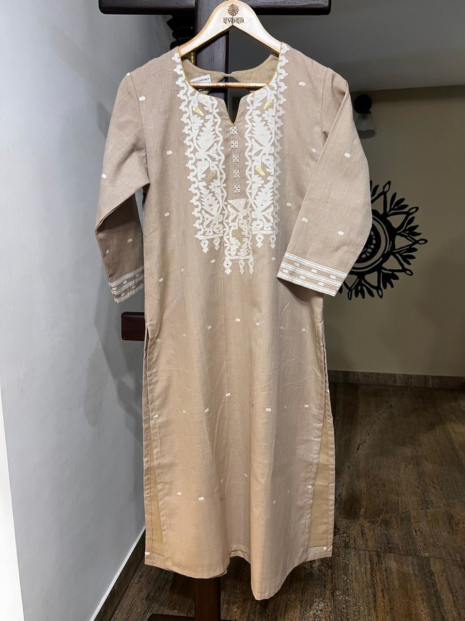 A Jamdhani kurta inspired by the timeless weaves of Kolkata. Light, intricate, and woven with care with delicate detailing that extends beautifully to the back, making it just as special from every angle.