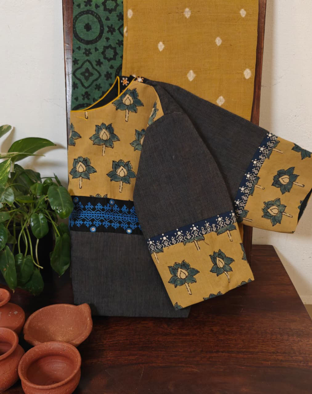 Grey and fenugreek come alive with an unusual kutchi embroidery — a rare blend of earthy tones and heritage craft. Unique, handmade, and timeless. 🪡