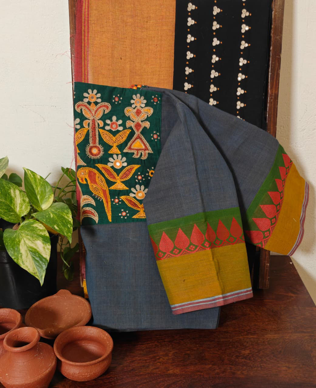 Our artisans creatively hand embroider, hand paint and hand print the blouses that come to you from the design house of SVASA. We use hand woven fabric extensively. You may notice very minute, almost insignificant flaws in the crafts since they are all handmade. We urge our patrons to overlook a few human errors that may have occurred in the process. Our aspirations are towards an empowered society, focusing on keeping traditional needlecraft alive for a long time to come.