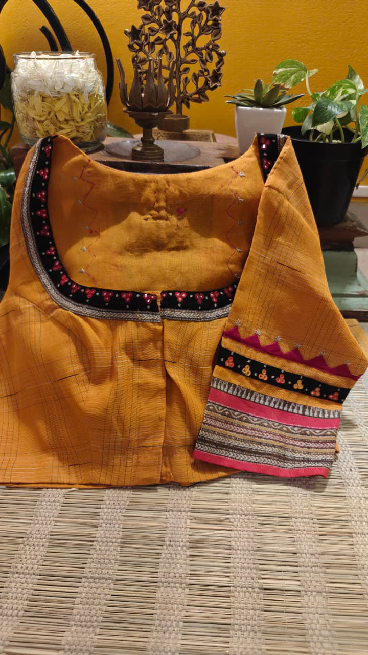 Our artisans creatively hand embroider, hand paint and hand print the blouses that come to you from the design house of SVASA. We use hand woven fabric extensively. You may notice very minute, almost insignificant flaws in the crafts since they are all handmade. We urge our patrons to overlook a few human errors that may have occurred in the process. Our aspirations are towards an empowered society, focusing on keeping traditional needlecraft alive for a long time to come.