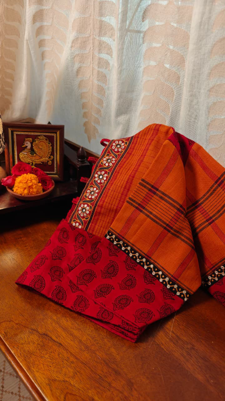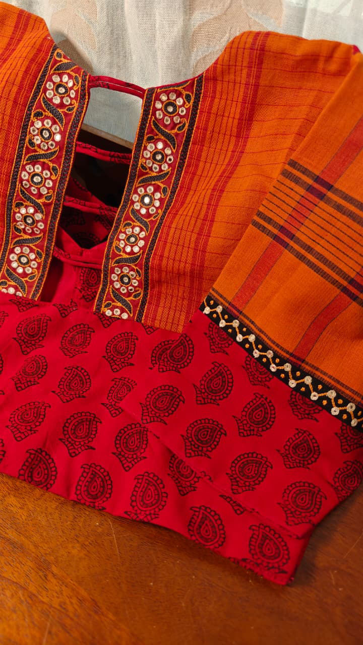 Our artisans creatively hand embroider, hand paint and hand print the blouses that come to you from the design house of SVASA. We use hand woven fabric extensively. You may notice very minute, almost insignificant flaws in the crafts since they are all handmade. We urge our patrons to overlook a few human errors that may have occurred in the process. Our aspirations are towards an empowered society, focusing on keeping traditional needlecraft alive for a long time to come.