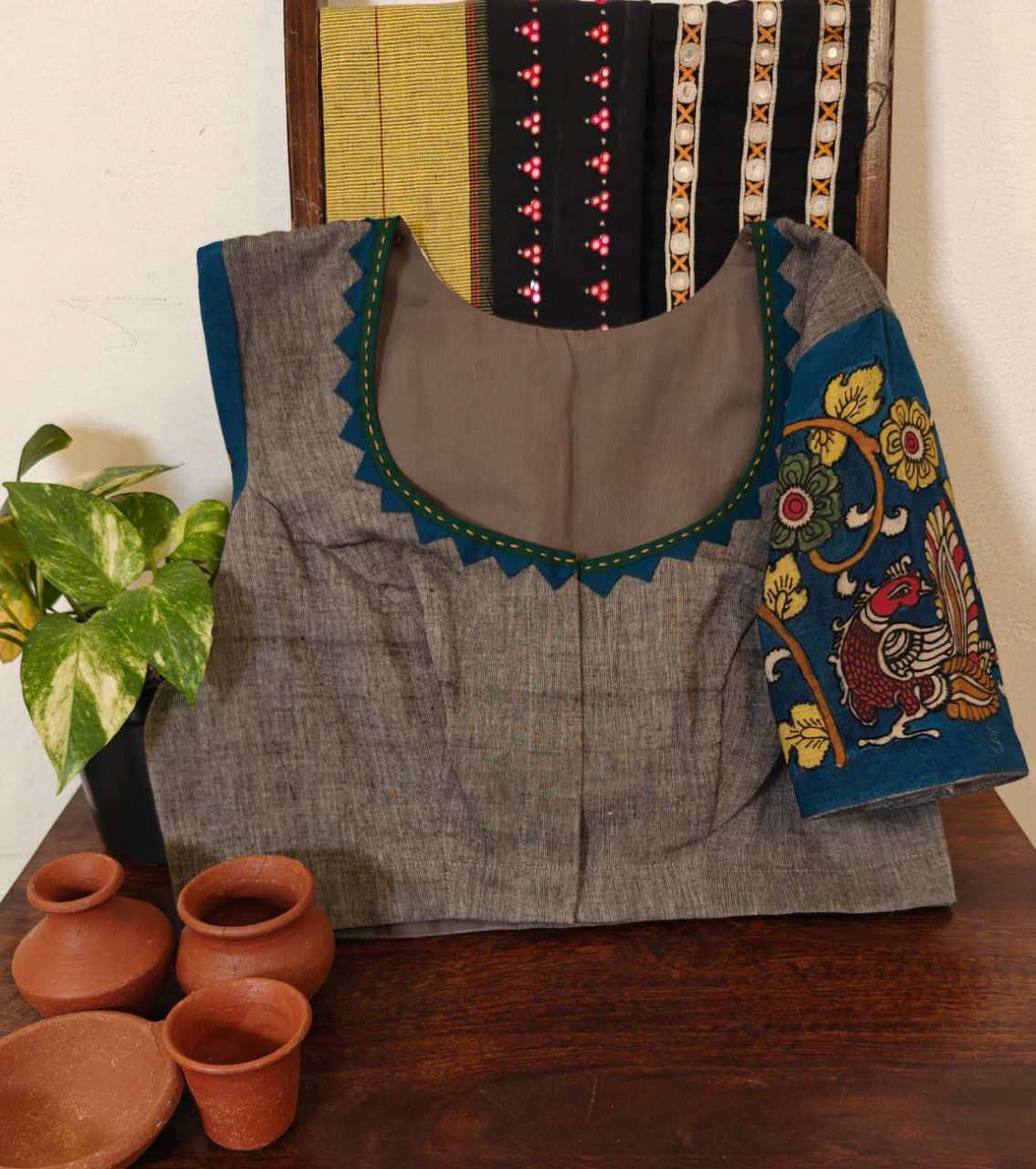 Our artisans creatively hand embroider, hand paint and hand print the blouses that come to you from the design house of SVASA. We use hand woven fabric extensively. You may notice very minute, almost insignificant flaws in the crafts since they are all handmade. We urge our patrons to overlook a few human errors that may have occurred in the process. Our aspirations are towards an empowered society, focusing on keeping traditional needlecraft alive for a long time to come.